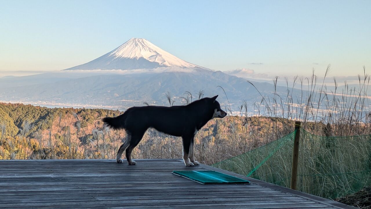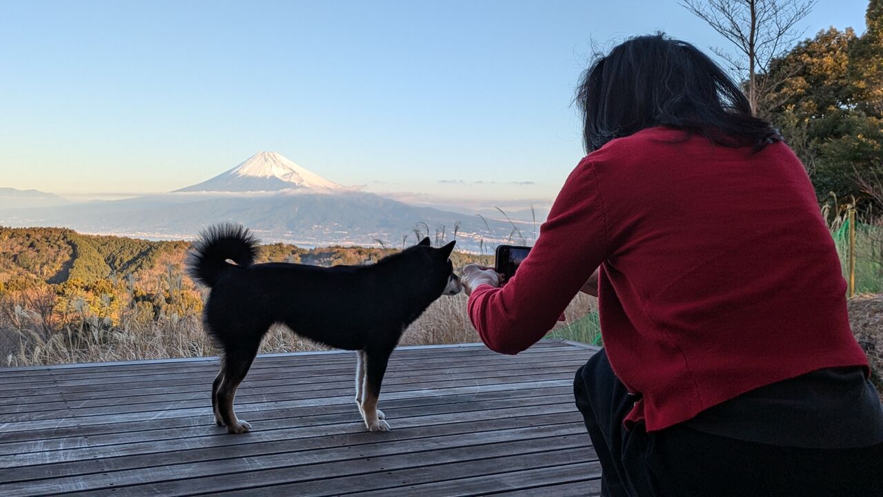 親バカが犬と富士山のコラボを撮影しています