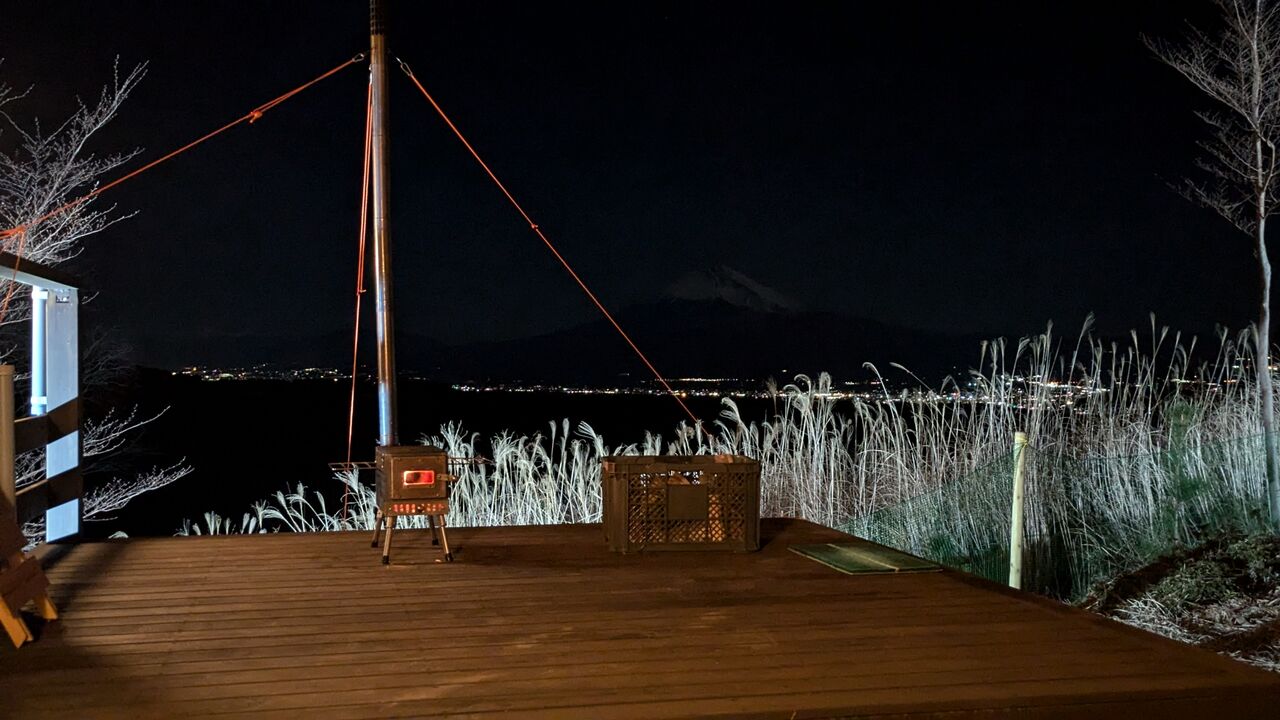 夏にバーベキューしている富士山デッキですが、今晩はここでセブン- イレブンで買ってきた鍋焼きうどんを家族で食べました。